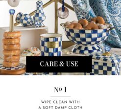 MACKENZIE-CHILDS Wood Paper Towel Holder, Decorative Paper Towel Holder for Kitchen, Blue-and-White Royal Check