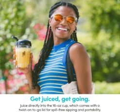 - Juice directly into our 16-oz cup, which comes with a twist-on to-go lid for spill-free sipping and portability.