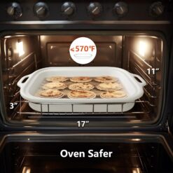 - EASY to HOLD: With its double-handled design, the rectangular baking dish is easy to carry from the oven or freezer to the table. Deep enough to hold everything with no overflow and you’ll love how comfortable it is to hold, even when it’s full of piping-hot food.