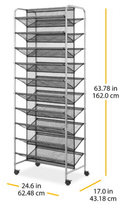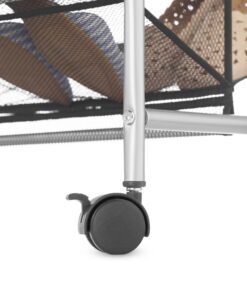 This metal and mesh shoe rack offers exceptionally convenient vertical space for organizing and neatly displaying up to 60 pairs of shoes anything from men’s oxfords, loafers, slippers, and flip-flops to women’s wedges, heels, booties, sandals, and sneakers. The unit holds up to 60 pairs of shoes and contains a mesh-lined back to prevent shoes from falling out. The portable shoe rack can easily be moved from one location to another. Once it’s in position, simply lock the wheels to keep the shoe rack securely in place. Easy to care for, just wipe with a clean damp cloth to keep it looking as good as new for years to come.