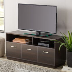 You can find a place for all your things. Finished in Espresso and detailed with stylish hardware, this beautiful TV stand gives your home the style you want with the functionality you need. The Mainstays 3-Door TV Console in Espresso is the perfect solution for outfitting any room.