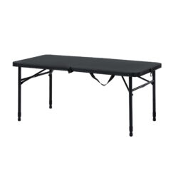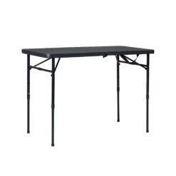 Provide all of the tablespaces that you need in all kinds of settings with the Mainstays 40″ Fold-in-Half Table in Rich Black. This versatile rectangular table is sturdy and durable, made with reliable materials, folds for easy storage and transportation, and adjusts to three different heights. When you’re finished using it, just fold in the metal legs, fold the table in half, and your new compact table is ready for transport! Its classic black color is sure to fit in at any gathering in any setting, and its spacious expanded 40″ long table-top is ideal for holding a wide variety of foods, crafts, or whatever items you are working with! It’s great for everyday use both indoors and outdoors, as a serving table, craft supply table, outdoor meal table, or for whatever purposes you may need. The plastic tabletop is easy to clean with no fuss just wipe it down with a damp cloth, and it will look as good as new! The carrying handle makes it perfect for taking on the go, for outdoor barbecues, game nights, school activities, parties, or tailgating events. The tabletop is large enough to be able to sit the whole group down around the table, so all of your friends and family can be included.