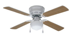 Update a room with this Mainstays 42″ Hugger Metal Indoor Ceiling Fan with Light, White, 4 Blades, LED Bulb, Reverse Airflow. Its ability to match nearly any existing setting due to its traditional style and bright finish make it the perfect addition to any room.