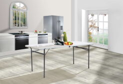 Provide all of the tablespaces that you need in all kinds of settings with the Mainstays 72″ Fold-in-Half Table in White. This versatile rectangular table is sturdy and durable, made with reliable materials, and folds for easy storage and transportation. When you’re finished using it, just fold in the metal legs, fold the table in half, and your new compact table is ready for transport! Its classic white color is sure to fit in at any gathering in any setting, and its spacious expanded 72″ long table-top is ideal for holding a wide variety of foods, crafts, or whatever items you are working with! It’s great for everyday use both indoors and outdoors, as a serving table, craft supply table, outdoor meal table, or for whatever purposes you may need. The plastic tabletop is easy to clean with no fuss just wipe it down with a damp cloth, and it will look as good as new! The carrying handle makes it perfect for taking on the go, for outdoor barbecues, game nights, school activities, parties or tailgating events. The tabletop is large enough to be able to sit the whole group down around the table, so all of your friends and family can be included.