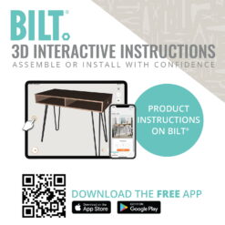 - 3D interactive assembly guide available through the free BILT app (Download from the app store or Google Play)