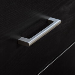 - Drawers feature metal runners and safety stops