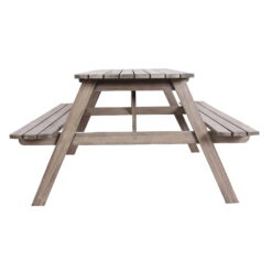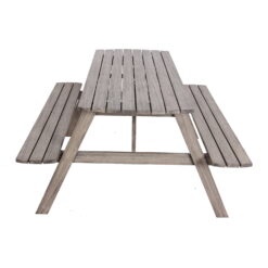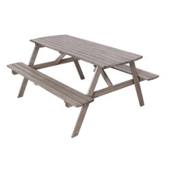 Liven up your outdoor feast with Mainstays Martis Bay Picnic Table. It looks wonderful amongst the greens. Its spacious table is versatile that you can use for dining, gathering and entertainment. An FSC certified wooden product that is easy to assemble. This weather resistant patio features a classy slatted design and benches that are attached to the table. A wooden picnic table that makes a comfortable spot for a BBQ party or a place for you and your loved ones to have a fun chit-chat.