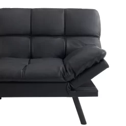 This futon showcases a clean silhouette to the fullest, making it perfect for adding a modern flair to any living ensemble. The split-back design of this futon sofa can be easily adjusted to any of your activities, from time for a friendly chat, reading or watching TV to a quick nap or a good night’s sleep. The armrests of the sofa bed have four adjustable positions, can be raised up as armrests, pillows or footrests, or can be laid flat to accommodate more people. This futon bed frame is made of solid wood, with 6 metal legs to ensure that it is still strong and durable in your long-term use. Perfect for unexpected overnight guests, or just a convenient nap spot, this is a versatile solution for small spaces in apartments, studios, and homes. The sofa is made of 100% polyester, which has excellent elasticity and toughness. It‘s very easy to assemble, Amazingly, in less than 20 minutes, the simple assembly of unboxing and room placement can be done, with no expert assembly required. Futon dimensions: 72″W x 34″Dx 32″H. Sleeping dimensions: 72″W x 43″D x 17″H. Weight limit: 600 lb