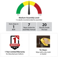 - Assembled dimensions: 20.875″ H x 45.375″ W x 15.75″ D