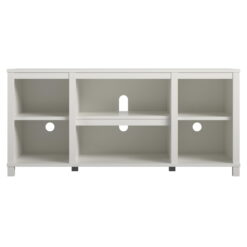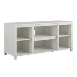 The Mainstays Parsons tv stand is just the right size for your flat paneled tv up to 50″ wide. This tv stand has tons of open storage so you can keep your cable box and gaming system on the 2 center shelves and still have room to organize your books, remotes, and DVDs on the other 4 shelves.