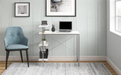 The Mainstays side storage student desk is designed with your hardworking student in mind. It features side shelving storage for textbooks, notebooks, binders, and electronic gear, allowing students to keep their workspace organized. The spacious desktop offers room for your laptop and homework. Keep this student desk in a bedroom, dorm room, or office without taking up too much space.