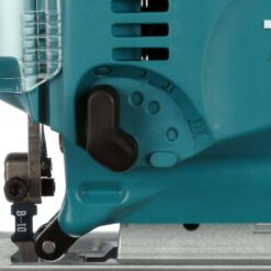 The Makita Top Handle Jig Saw combines power, a compact design and convenient ease-of-use features with durability for a saw that can handle a wide range of cutting applications. Featuring 3 orbital settings plus straight cutting with a 3 Amp motor, this saw also has a range of convenience features, including a rubberized grip for superior comfort and control, a counterweight balancing system for reduced vibration and a large trigger switch for easy use. The through-the-body dust port provides optimal dust management and with the on-board hex wrench, blade changes and bevel adjustments are fast and easy for less downtime and improved productivity.