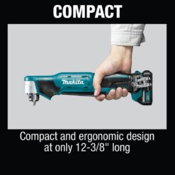 The Makita 12-Volt maximum CXT Lithium-Ion Brushless Cordless 3/8 in. Right Angle Driver-Drill delivers power and speed in an ultra-compact size for efficient drilling, driving and fastening in tight spaces. The AD03 has a 3/8 keyed metal chuck for improved bit gripping power and a compact angle head height of only 2-1/2 for work in close quarters. With Makita 12-Volt maximum CXT Lithium-Ion slide-style batteries, users get superior balance and ergonomics over pod-style batteries. For added convenience, the batteries include an on-board LED charge level indicator. The AD03 weighs only 2.6 lbs. (with 2.0Ah battery), with variable speed (0-1,100 RPM) and up to 245 in./lbs. of Max Torque. Convenience features include an easy-to-operate paddle switch with variable speed control and built-in LED light to illuminate the work surface. It’s an ideal solution for users seeking a more compact driver-drill with less weight and for applications in tight spaces. For longer run time, 12-Volt maximum CXT cordless tools are also compatible with the 12-Volt maximum CXT Lithium-Ion 4.0Ah battery (BL1041B, sold separately). 12-Volt maximum CXT Lithium-Ion batteries are engineered with a Battery Protection Circuit that protects against overloading, over-discharging and over-heating. Its part of the expanding 12-Volt maximum CXT series, combining performance with superior ergonomics in a compact size.