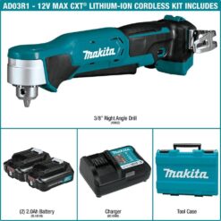 Makita AD03R1 12V max CXT Lithium-Ion Cordless 3/8 in. Right Angle Drill Kit (2.0 Ah)