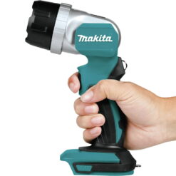 The 18V LXT Lithium-Ion L.E.D. FLASHLIGHT (model DML808) provides bright illumination, versatility, and convenience. The high-luminance single L.E.D. FLASHLIGHT provides a full 200 lumens of light and a sharp, round Spotlight. Features include a beam adjustment from spot to flood, and a 12-position pivoting head with positive stops from 60Degree to 110Degree. when used with a fast-charging 18V LXT Lithium-Ion 5.0Ah battery (sold separately), the flashlight delivers up to 23 hours of continuous illumination on a single charge. The flashlight can be powered by Makita 18V LXT and 18V LXT compact Lithium-Ion batteries. Added features include aluminum flashlight head for increased durability and a metal hang-hook. The flashlight has a slim, compact design at 11-3/4″l and weighs only 2.5 lbs. (With 18V LXT battery, sold separately).