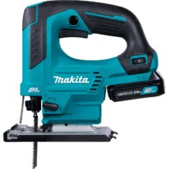 VJ06 R1 JThe Makita 12-Volt max CXT Lithium-Ion Brushless Top Handle Jig Saw Kit (VJ06R1J) delivers fast and efficient cutting, with a compact design that’s engineered for ease-of-use and maneuverability. The VJ06R1J features a top handle design and is ideal for woodworkers, cabinet makers, remodelers, and general contractors. The kit includes two 12-Volt max CXT Lithium-Ion slide-style batteries for improved balance and ergonomics over pod-style batteries. For added convenience the batteries include an on-board LED charge level indicator. The VJ06R1J has a compact and ergonomic design with less weight (only 4.1 lbs. with 12-Volt max CXT 2.0Ah battery). The efficient Makita-built brushless motor is engineered for longer run time, increased power and speed, and longer tool life. The variable 5-speed control dial (800-3,000 RPM) enables the user to match the speed to the application, and the 3 orbital settings plus straight cutting provide added versatility. The soft start suppresses start-up reaction for better accuracy, and the no-load speed reduction feature automatically reduces SPM for more accurate cutting starts. Convenience features include tool-less blade changes, large 2-finger variable speed trigger with lock-on button, dual LED lights, and a built-in dust blower to clear the line of cut.