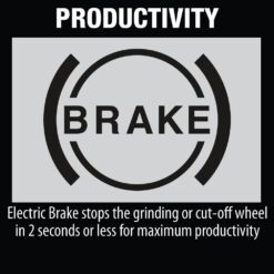 - Electric brake stops the grinding or cut-off wheel in 2 seconds or less for maximum productivity