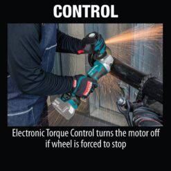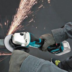 Makita delivers corded grinding performance without the cord with the 18-Volt LXT Lithium-Ion Brushless 4-1/2 in. / 5 Paddle Switch Cut-Off/Angle Grinder with Electric Brake (tool only, battery and charger sold separately). It’s powered by a Makita brushless motor for longer run time, increased power and speed, and longer tool life. For the most demanding applications, Makita exclusive Automatic Speed Change technology automatically adjusts speed and torque during operation for optimal performance. The XAG20Z is ideal for grinding and cutting a wide range of materials including tile, concrete, pipe, conduit, and more. Additional features include an electric brake that stops the grinding or cut-off wheel in 2 seconds or less, and Electronic Torque Control that turns the motor off if rotation speed suddenly slows or the wheel is forced to a stop. The variable speed control dial allows manual RPM adjustment (3,000-8,500), allowing the user to match the speed to the application. Its part of Makita expanding 18-Volt Lithium-Ion system, the worlds largest cordless tool system powered by 18-Volt Lithium-Ion slide-style batteries. Makita 18-Volt Lithium-Ion batteries have the fastest charge times in their categories, so they spend more time working and less time sitting on the charger.