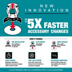 - E-07397 – X-LOCK quick change system provides up to 5X faster blade changes vs. standard angle grinder mount