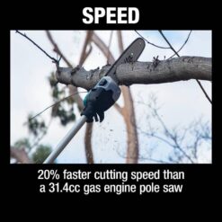 - 20% faster cutting speed than a 31.4cc gas engine pole saw