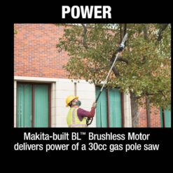 - Makita-built BL Brushless Motor delivers power of a 30cc gas pole saw