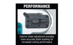 Exterior blade adjustment provides more accurate blade tracking for increased cutting performance