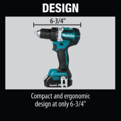 Makita XFD12R 18V LXT Lithium-Ion Compact Brushless Cordless 1/2 in. Driver-Drill Kit w/ (2) Batteries (2.0Ah), Charger, Bag