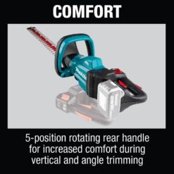 - 5-position rotating rear handle for increased comfort during vertical and angle trimming
