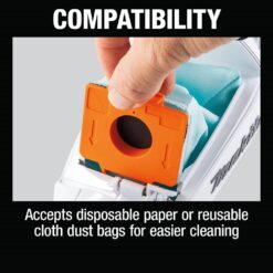 - Accepts disposable paper or reusable cloth dust bags for added convenience