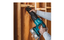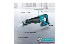 Makita, a pioneer in brushless motor technology and battery innovation, combines both in the 18-Volt X2 LXT (36-Volt) Lithium-Ion Brushless Reciprocating Saw Kit. It’s powered by two 18-Volt Lithium-Ion batteries (sold separately) for 36-Volt power and performance and has an electronically-controlled BL Brushless motor that matches torque and RPM to the application. Makita 18-Volt X2 means freedom from the cord, even for demanding applications like cutting and demolition that traditionally called for a corded reciprocating saw. Best of all, users can remain in one battery platform, using the same fast-charging 18-Volt batteries on the XRJ06Z as they use across the Makita 18-Volt LXT cordless tool line-up. The XRJ06Z is equipped with efficiency features for faster cutting. The long 1-1/4 in. stroke length increases cutting efficiency and the refined crank mechanism design minimizes blade deflection and reduces vibration. Convenience features include an LED light to illuminate the line of cut, retractable tool hook and “tool-less” blade change for faster blade installation and removal. For improved tool performance and extended battery life, Makita created Star Protection Computer Controls. Star Protection is communication technology that allows the Star Protection-equipped tool and battery to exchange data in real time and monitor conditions during use to protect against overloading, over-discharging and overheating.