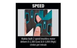 - Powerful BL brushless motor delivers 0-3,000 (metal cutting) and 0-2,300 (wood cutting) strokes per minute for faster cutting