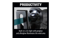 Built-in LED light with preglow and afterglow illuminate the work area - Reinforced fixed shoe for added durability