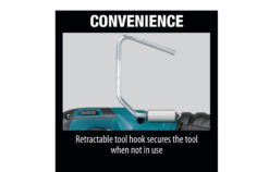 Retractable tool hook secures the tool when not in use - Ergonomic design at only 17-3/4 in. long