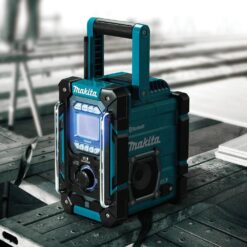 Listen to music on or off the job site with the new Makita 18V LXT / 12V max CXT Cordless Bluetooth Radio. The radio delivers rich, full stereo sound from two powerful 3.5″ side-firing speakers. Users can listen to the digital tuner, a mobile device wirelessly connected via Bluetooth, or an MP3 player via the auxiliary port. XRM10 offers versatility in power sources. Compatible with a 12V max CXT and 18V LXT Lithium-Ion Batteries, this radio provides more flexibility for users. The radio runs up to 18 hours with an 18V LXT 5.0Ah battery (sold separately). For the first time, a Makita radio charges 18V LXT and 12V max CXT Batteries (sold separately). An 18V LXT Lithium-Ion 5.0Ah Battery charges in only 80 minutes. XRM10 is durable to withstand harsh jobsite conditions. The radio features a dust- and water-resistant construction (IP64 rated) and elastomer bumpers for increased durability. Other notable features include a storage space for portable devices and a built-in bottle opener.