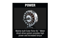 - Makita-built Outer Rotor BL Brushless Motor direct-drive system provides high power and increased torque
