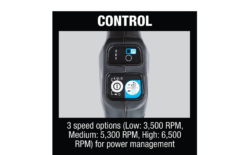 Automatic Torque Drive technology mode automatically shifts from 3,500 RPM to 6,500 RPM for extended run time or added power - 3 speed options (Low: 3,500 RPM, Medium: 5,300 RPM, High: 6,500 RPM) for power management