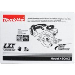 The Makita 18-Volt LXT Lithium-Ion Cordless 5-3/8 in. Metal Cutting Saw delivers cordless cutting power to the jobsite. The XSC01Z has a Makita built high-torque motor and a compact design for a wide range of metal cutting applications in a variety of materials. It’s part of Makita’s expanding 18-Volt Lithium-Ion series, the world’s largest cordless tool line-up powered by an 18-Volt Lithium-Ion slide-style battery. Makita 18-Volt Lithium-Ion batteries have the fastest charge times in their categories, so they spend more time working and less time sitting on the charger. For improved tool performance and extended battery life, Makita created star protection computer controls. Star Protection is communication technology that allows the Star Protection-equipped tool and battery to exchange data in real time and monitor conditions during use to protect against overloading, over-discharging and overheating. For increased versatility, the tool can also be powered by Makita 18-Volt LXT and Compact Lithium-Ion batteries with the star symbol on the battery indicating Star Protection inside. The XSC01Z features a Makita built high-torque motor that delivers 3,600 RPM for faster metal cutting through Unistrut, all thread, channel, corrugated, conduit, pipe, sheet metal, square tubing, steel and more.