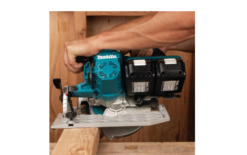 Makita, a pioneer in brushless motor technology and battery innovation, combines both in the 18V X2 (36V) LXT Lithium-Ion Brushless 7-1/4 in. Circular Saw Kit (XSH06PT). It’s powered by two 18V LXT Lithium-Ion batteries for maximum performance and has an electronically controlled BL Brushless motor that matches torque and RPM to the application. Makita 18V X2 means freedom from the cord, even for demanding applications like cutting sheet and dimensional lumber that traditionally called for a corded saw. Best of all, users can remain in one battery platform, using the same fast-charging 18V batteries with the XSH06PT as they use across the expansive Makita 18V LXT cordless tool system. The XSH06PT has a long list of features for efficient cutting without the cord. The electronically controlled brushless motor delivers a full 6,000 RPM for efficient cutting, with Automatic Speed Change technology to adjust the cutting speed and torque under load for optimum performance. In internal testing, the XSH06PT made up to 610 crosscuts per charge in 2×4 SPF lumber and up to 320 crosscuts per charge in 2×10 SPF lumber using two fully charged 5.0Ah batteries. Added features include a large 2-5/8 in. cutting capacity at 90°, and an electric brake for maximum productivity. The saw has a die-cast magnesium base and blade guard with die-cast magnesium base, blade guard and blade cover, which combines durability with less weight (only 10.5 lbs. with batteries).