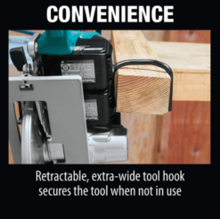 - Retractable, extra-wide tool hook secures the tool when not in use
