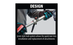 Lever style lock system allows for quick tool-less installation and replacement of attachments - Electronic torque control turns the motor off if rotation speed suddenly slows down or stops