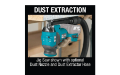 Connects to Makita vacuum cleaners with optional dust accessories for a cleaner work environment