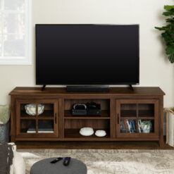 Manor Park Modern Farmhouse TV Stand for TVs Up to 78″, Dark Walnut