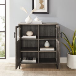 Introduce the perfect storage companion with the Manor Park Transitional Grooved Door Accent Cabinet. Store your fancy dinnerware, fine linens, or tech and gadgets behind modern glass doors. The timeless and versatile silhouette complements a wide variety of aesthetics. The grooved detailing adds a unique touch to a classic dining piece. This accent cabinet could also be used as a bar cabinet to host an at-home wine and dine gathering. Enjoy soft-close doors that offer quiet functionality. Use the two adjustable shelves to cater to your storage needs.