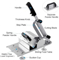 - 3. ENHANCED STAINLESS STEEL: Upgraded since late 2019, we’re using 1.5mm thick stainless steel board to craft this product, 2 times thicker than other similar slicer on the market. This high quality stainless steel can stands more pressure, can be easy to clean and used for a long time when maintained properly.【Note: There might be slight scratches on the product, it happened during transportation, please rest assured the product is new】