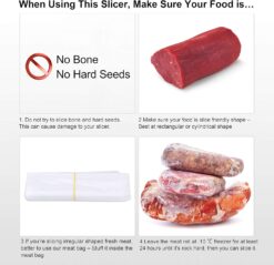 - 2. ADVANTAGES: Save more on Buying Pre-sliced Food. If you regularly buy pre-sliced meats at the supermarket, with this meat slicer you can buy for example, a chunk of beef or lamb, then put it in the freezer overnight before slicing into thin slices – it works out about friendly budget, comparing to pre-cut, and you’ll save a lot over a year, possibly even enough to pay for the machine.