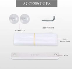 - 4. Package includes: a set of the frozen meat slicer, a separate meat holder, 2 blades(1 installed), 10 meat bags, 2 suction cups, an allen wrench and the instruction manual. DIMENSION: 460mm*160mm*120mm (18.1” * 6.3” * 4.7”); Blade Length: 196mm (7.9”); Weight : 2.3kg; Thickness of the meat slice can be adjusted: from 0.2mm to 20mm. It’s recommended to slice thinly because the thinner the meat is, the easier for you have a clean cut.