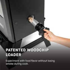 - PATENTED SIDE WOOD CHIP LOADER – Patented side wood chip loader to continually add smoke flavor without having to open the smoker door, locking in heat, smoke, and moisture for delicious and juicy meat.