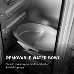 - WATER BOWL TO ADD MOISTURE – The removable water bowl allows for optimal amount of moisture, resulting in juicy and tender meats. Experiment with different juice flavors for hints of various flavor profiles.