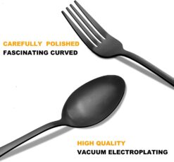 - DURABLE STAINLESS STEEL – Made of premium black stainless steel, the black utensil set will not easy to bend. Ergonomic design with balanced weight and sleek smooth lines, economic handle ensures comfortablity to hold and healthy eating.