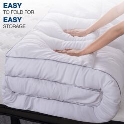 - Easy to Care: Let minimalism refreshes your bedroom with baffle box pattern design, it also helps to keep the feather and down filling from shifting. The mattress pad topper has 4 double anchor bands adapting to mattress depths up to 18″, helping keep the plush mattress topper in one place. Cheaper and easier to store than a mattress. Easy to move away, a must for renters!